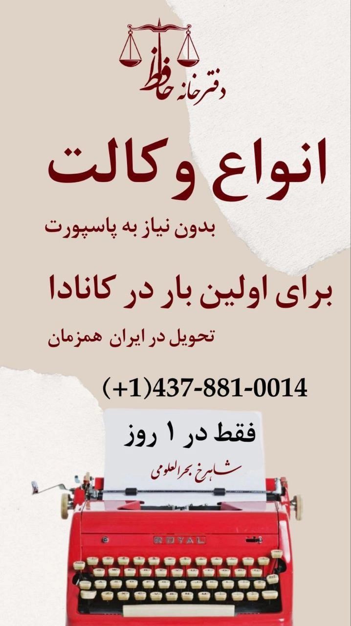 دفترخانه حافظ تنها یک مرکز ارائه خدمات اداری نیست؛ بلکه نقطه‌ی امنی برای پایان دادن به دغدغه‌های حقوقی ایرانیان مقیم کاناداست. ما با درک عمیق از چالش‌های مهاجرت، بستری را فراهم کرده‌ایم تا پیچیده‌ترین امور ثبتی، کنسولی و قضایی شما در ایران—از طلاق و انحصار وراثت تا تنظیم وکالت‌نامه‌های فوری—بدون نیاز به حضور فیزیکی شما در کشور و با بالاترین ضریب اطمینان انجام شود. در حافظ، فاصله جغرافیایی معنایی ندارد؛ چرا که قانون، زبان مشترک ما برای احقاق حقوق شماست.
